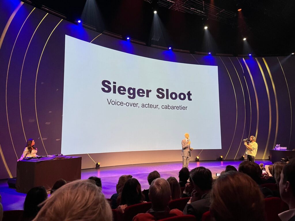 “Ik zie een aantal mensen verschrikt kijken, maar geen zorgen”, opende (stem)acteur Sieger Sloot zijn speech. “Ik ben niet van Greenpeace. En ik ga me ook nergens aan vastplakken. Mijn naam is Sieger Sloot en ik ben een collega van jullie.”